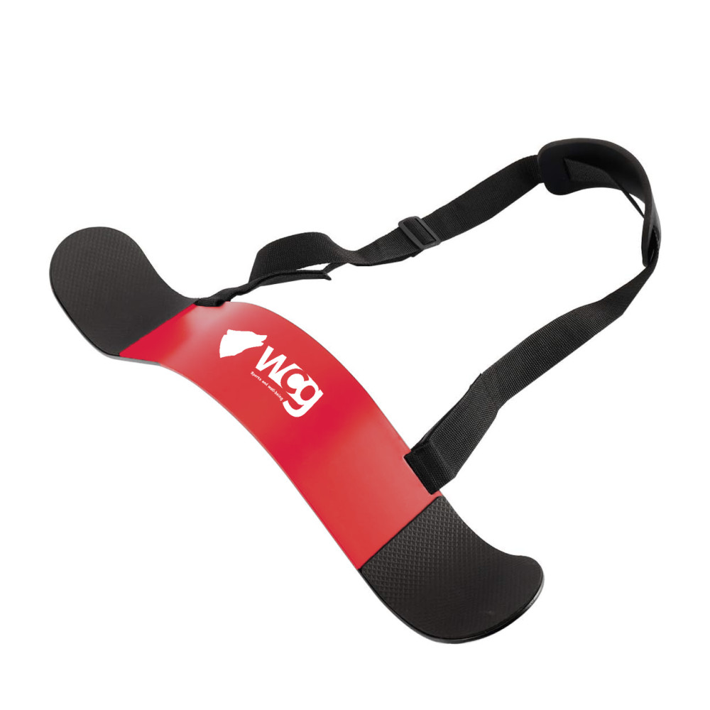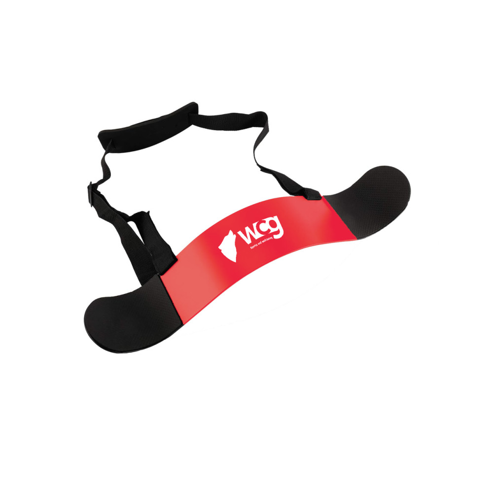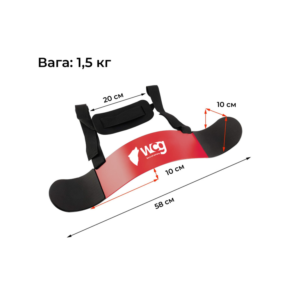 Армбластер изготовлен из металла, в месте контакта с плечами расположены мягкие накладки для более комфортного использования тренажера. Металлическая деталь тренажера окрашена красной краской.
