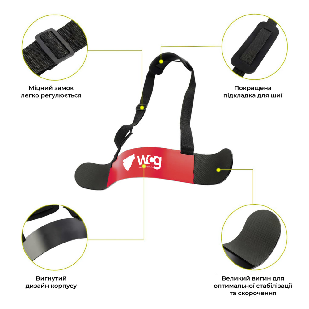 Изолятор одевается на шею. Длину ремня можно регулировать в зависимости от антропометрических данных спортсмена. Мягкая накладка на ремне находится в области шеи.