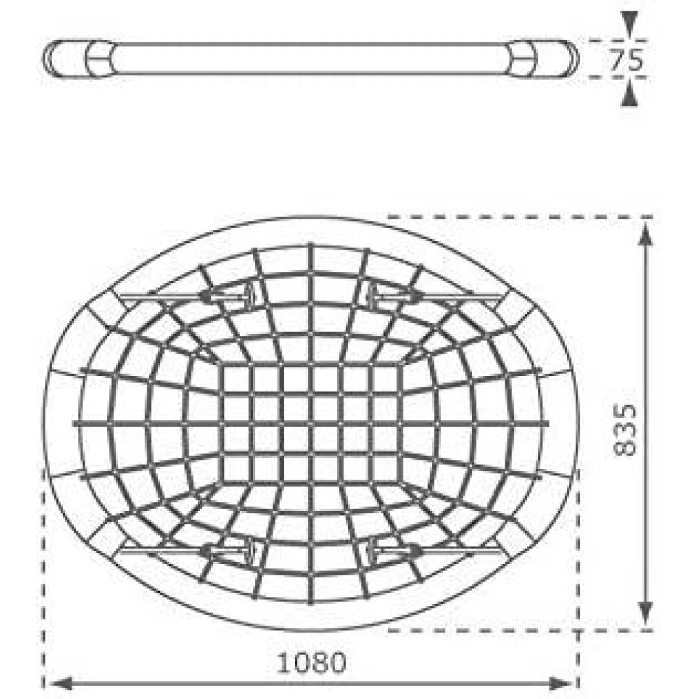 Диаметр качели - 108х83 см. Длина подвесов - 2 м (идут в комплекте).