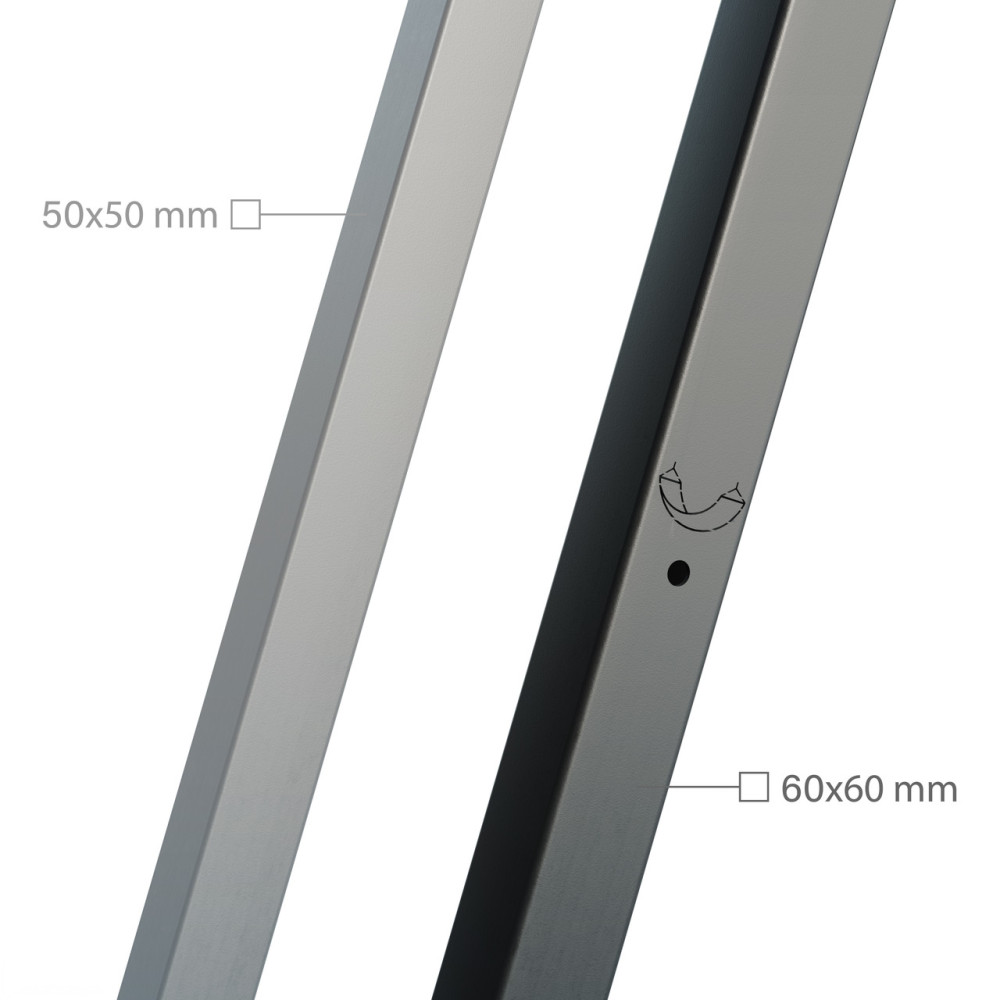 Ножки каркаса изготовлены из профильной трубы 60х60 мм и спроектированы под определённым углом для дополнительной устойчивости и безопасности.