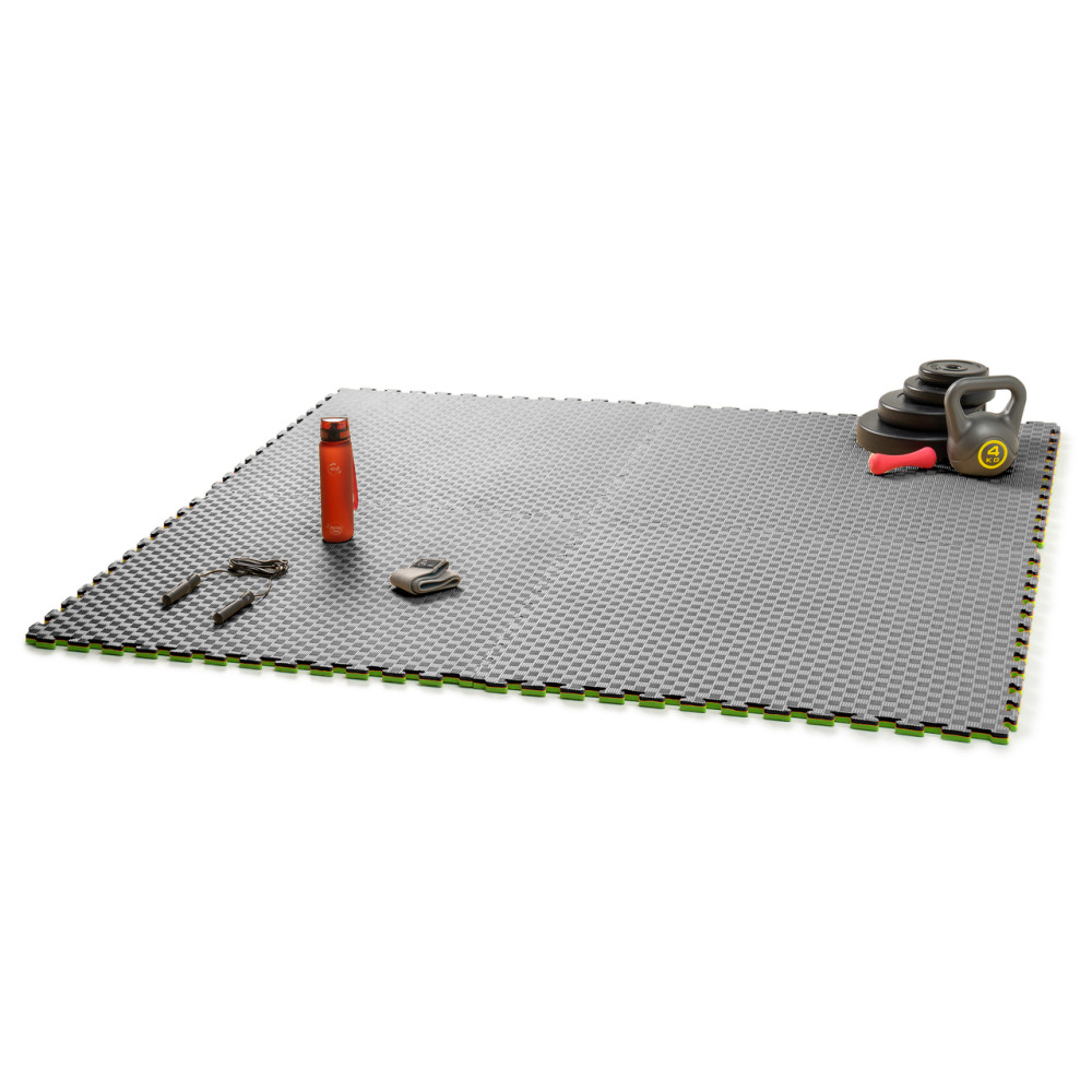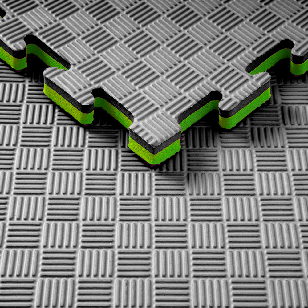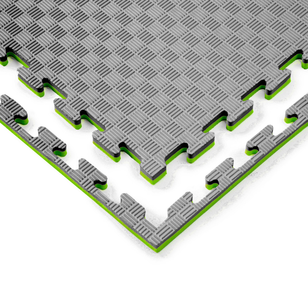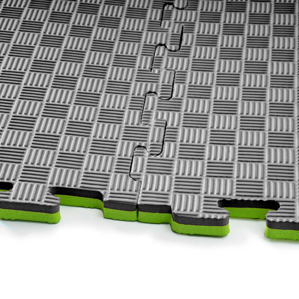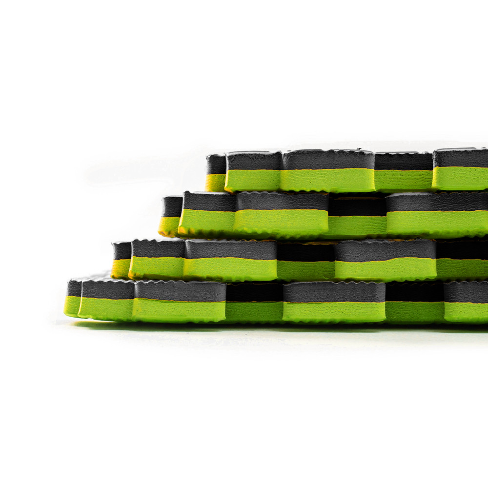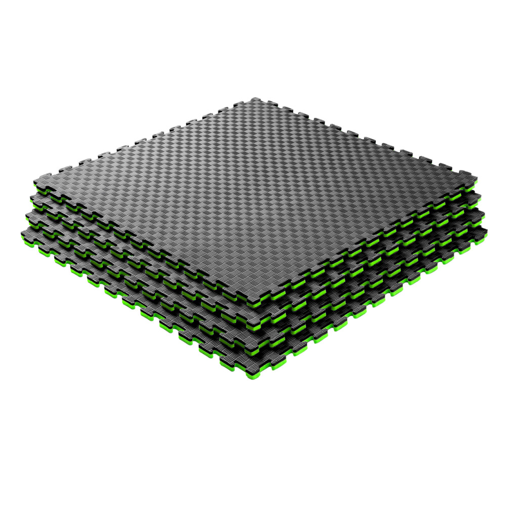 Мат Татами 1000х1000х20 мм черный и зеленый - является одним из самых популярных и универсальных видов напольных покрытий для детских площадок, спортивных заведений, фитнес-клубов и других спортивных помещений. Они производятся из безопасного материала на основе этиленвинилацетата (EVA/ЕВА) имеют низкий вес и простоту в монтаже. Татами состоят из легко соединяемых между собой пазлов, что делает процесс монтажа быстрым и простым.