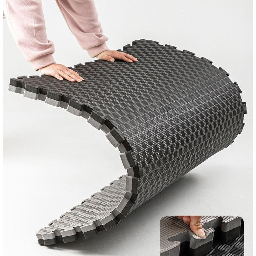 Мат Татами 1000х1000х30 мм черно-серый - является одним из самых популярных и универсальных видов напольных покрытий для детских площадок, спортивных заведений, фитнес-клубов и других спортивных помещений. Они производятся из безопасного материала на основе этиленвинилацетата (EVA/ЕВА) имеют низкий вес и простоту в монтаже. Татами состоят из легко соединяемых между собой пазлов, что делает процесс монтажа быстрым и простым.