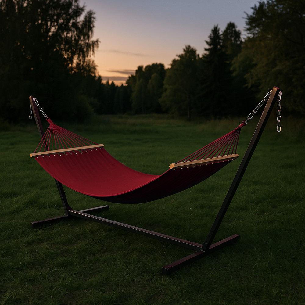 Каркас стойки подходит для всех типов гамаков: одноместного, двухместного, семейного. В комплекте со стойкой предоставляется весь необходимый комплект крепежей для сборки стойки и установки гамака.