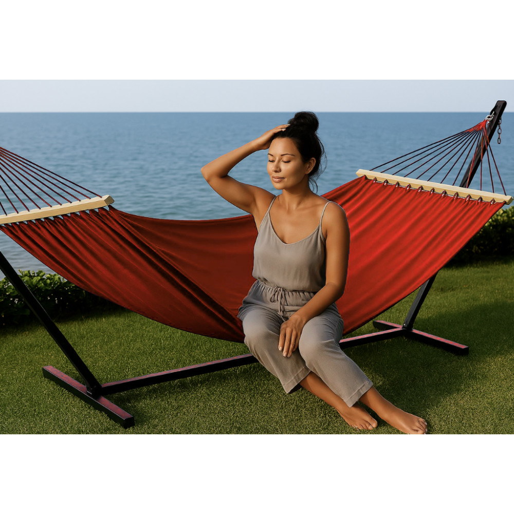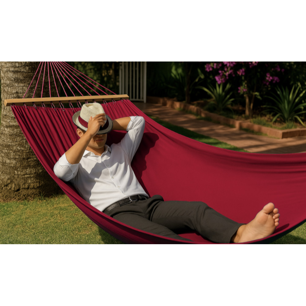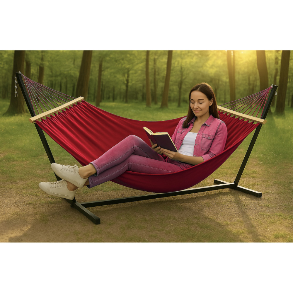 - Монотонный гамак с планкой WISH красный двухместный XXL 200х150 WCG