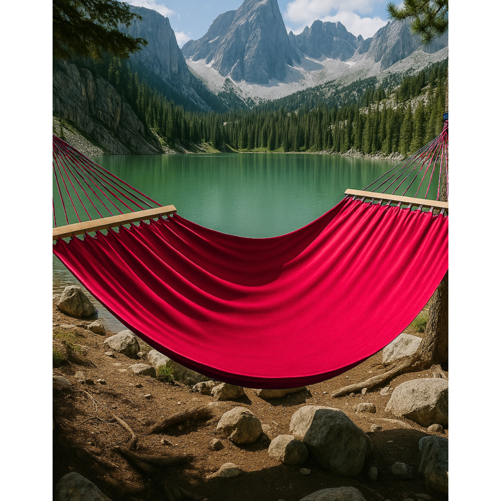 - Монотонный гамак с планкой WISH красный одноместный XL 200х100 WCG
