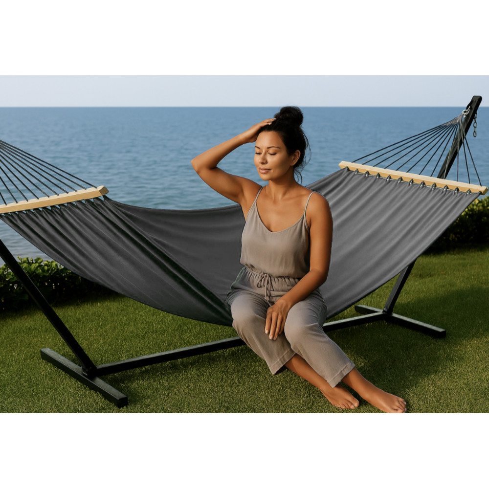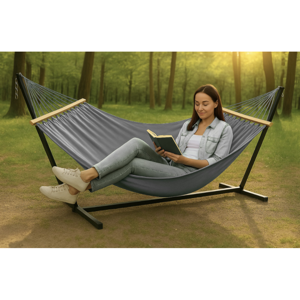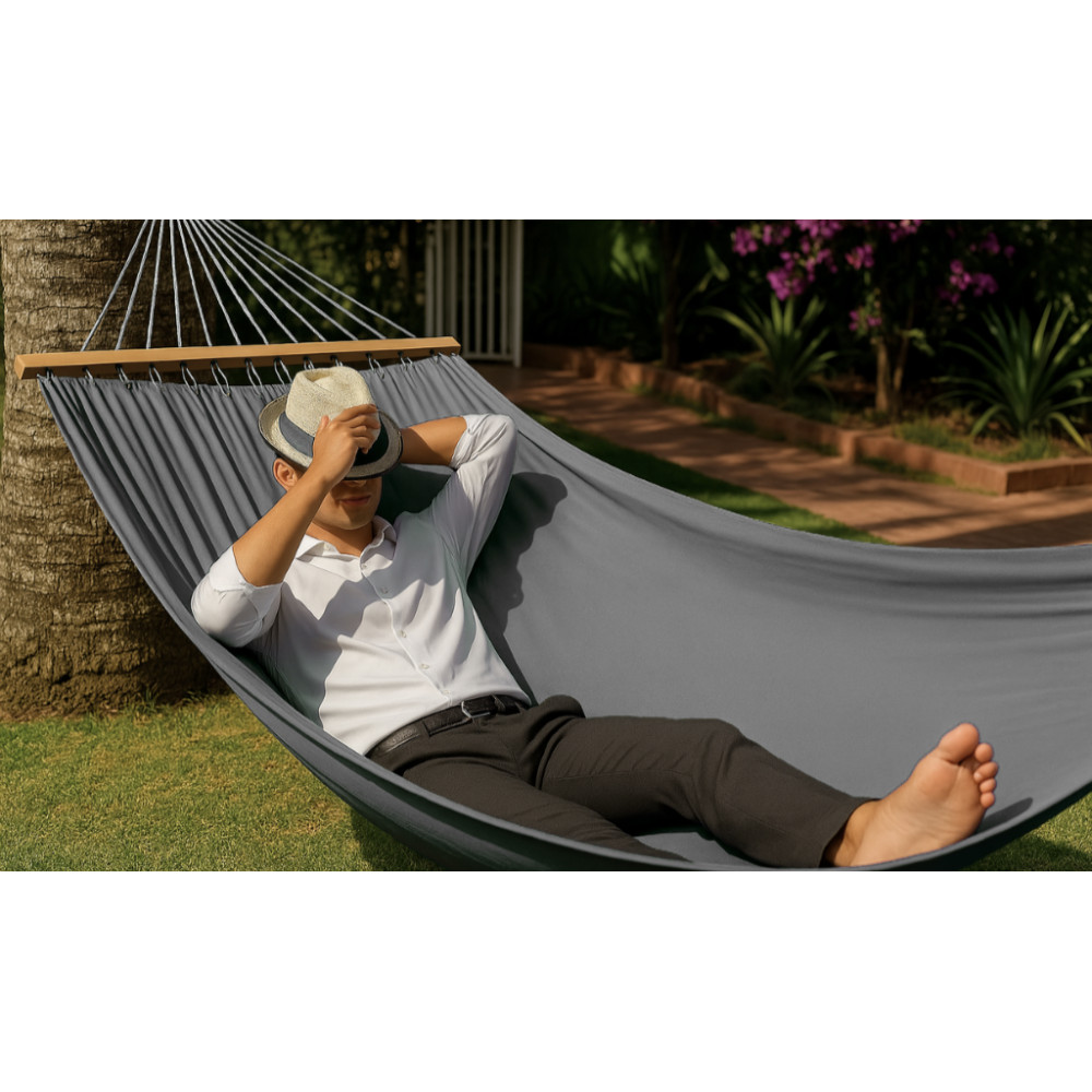 - Монотонный гамак с планкой WISH серый двухместный XXL 200х150 WCG