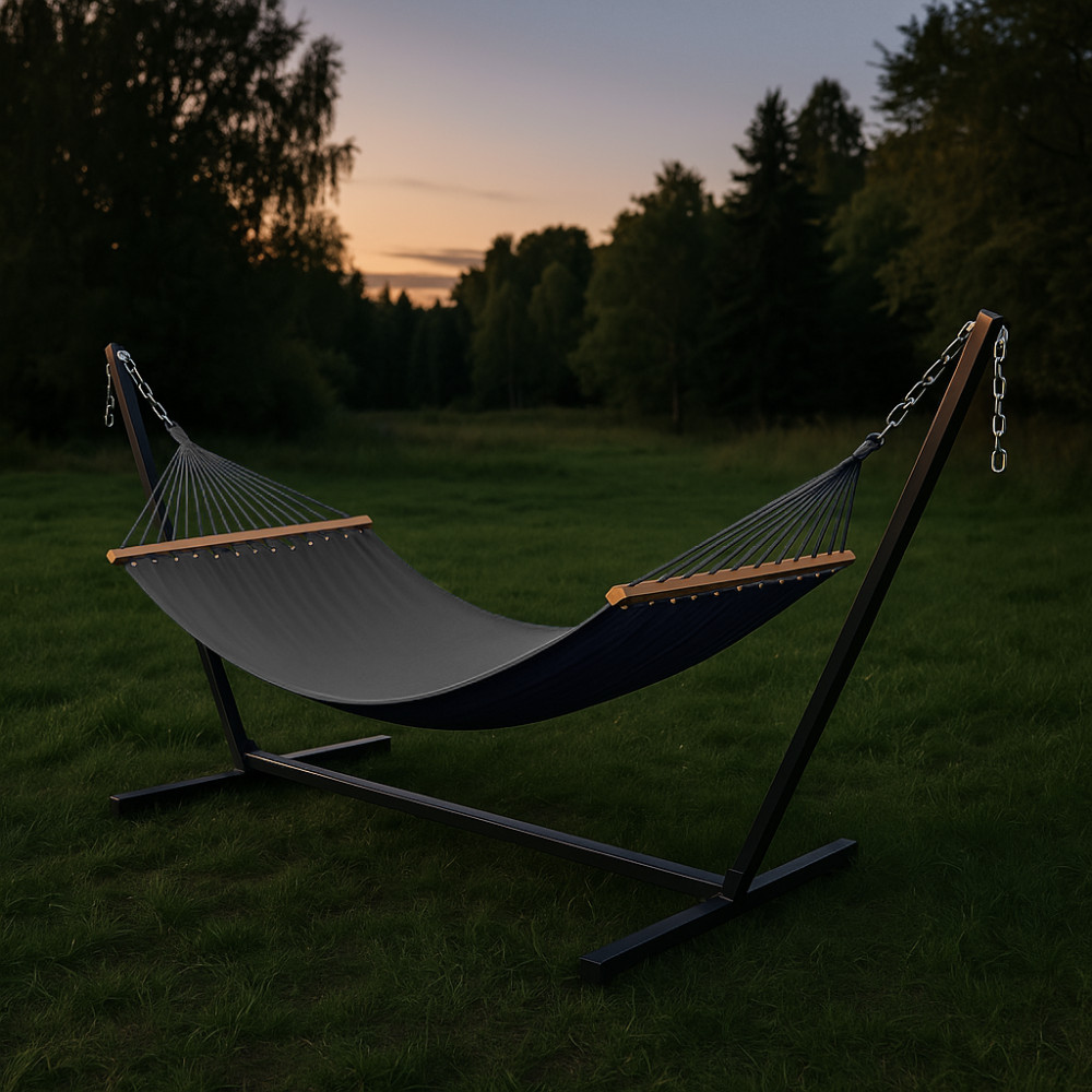 Каркас стойки подходит для всех типов гамаков: одноместного, двухместного, семейного. В комплекте со стойкой предоставляется весь необходимый комплект крепежей для сборки стойки и установки гамака.