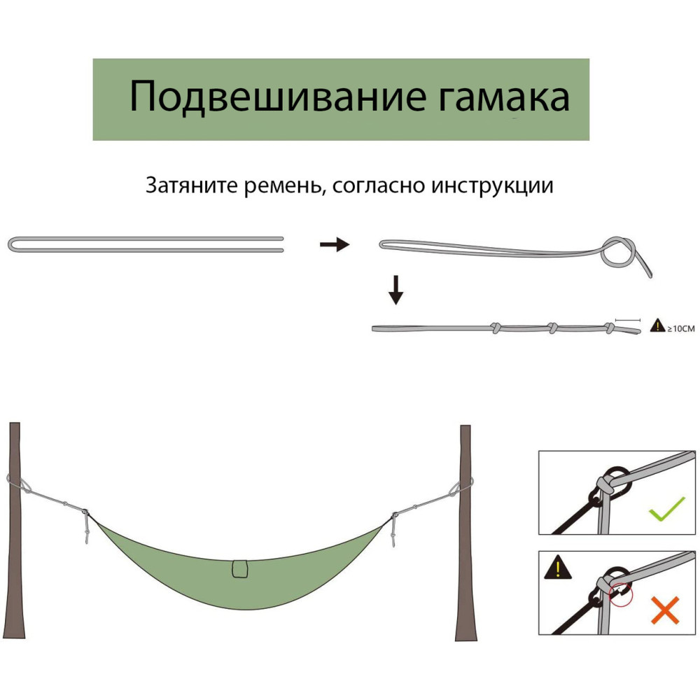 Большинство гамаков которые Вы можете встретить на рынке поставляются без карабинов и вместо прочных ремней используют крепление на тросу. Это неудобно а так же не совсем безопасно. Мы предлагаем Вам гамаки с сверхпрочными ремнями для безопасности, и с креплением на карабинах для простоты в установке! Вам больше не нужно затягивать узлы переживая что гамак упадет.