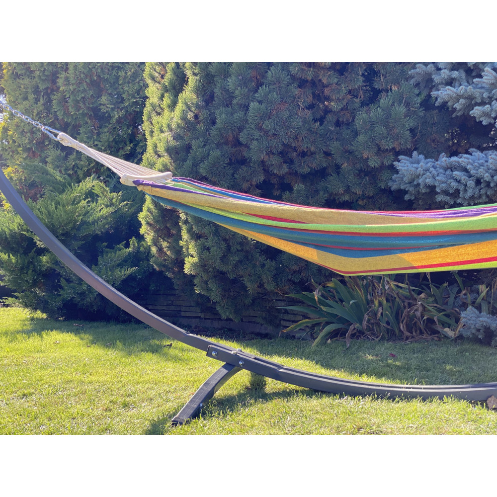 Мы являемся производителем этих гамаков и рам для них. По этому только у нас Вы сможете подобрать металлическую раму под гамак, которая доступна в 6 цветах! Для каркаса используется отборный профиль толщиной 2мм, который гарантирует безопасное использование.