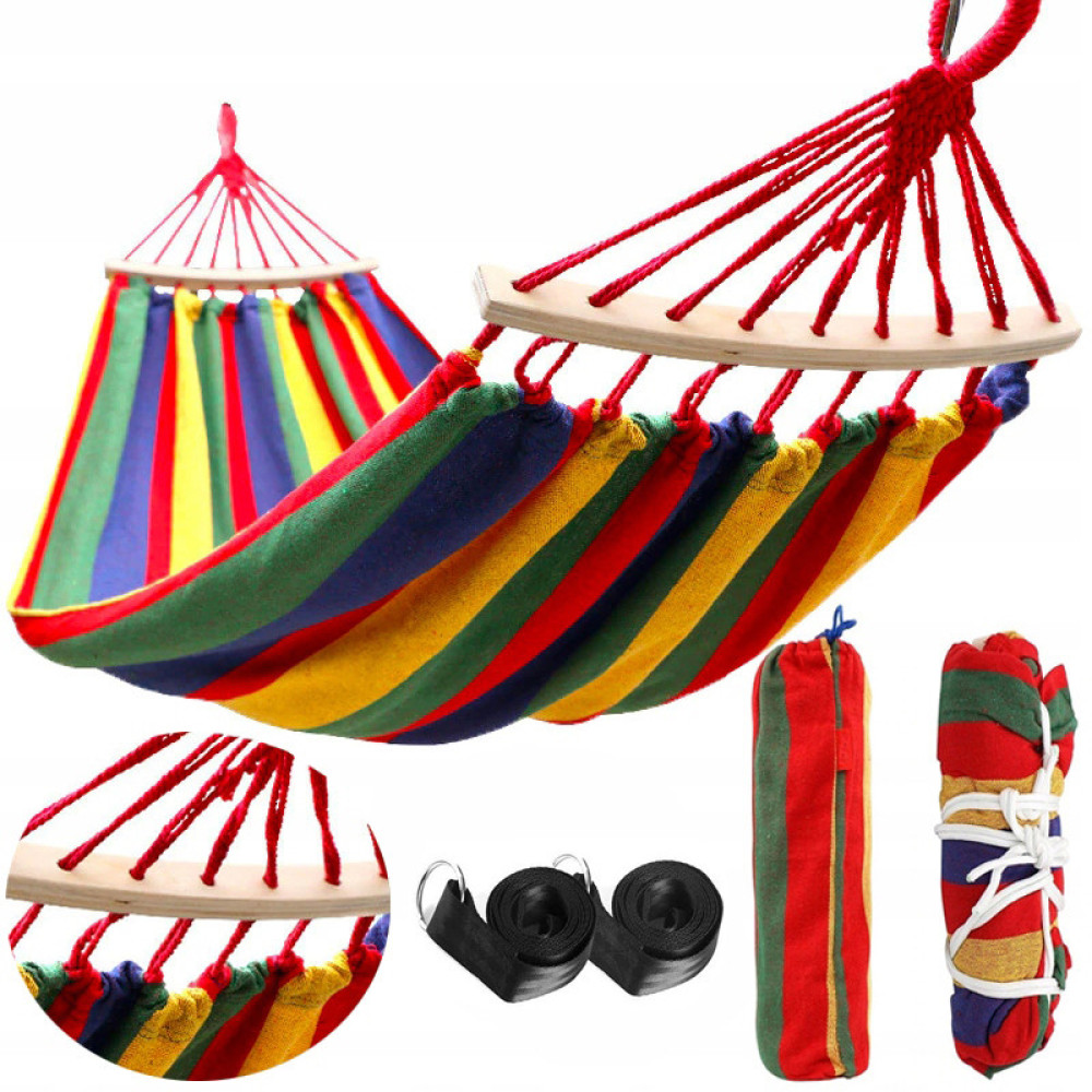 Материал, идеально подходящий для подвесных гамаков, отвечающий всем требованиям, предъявляемым к качественным гамакам. Будучи мягким и приятным на ощупь, хлопок подарит вам приятные тактильные ощущения в течение длительных часов отдыха. Вы смело можете брать с собой своих детей, так как гипоаллергенная ткань не вызывает раздражений или покраснений даже на чувствительной детской коже. К тому же, для окрашивания модели использовались стойкие натуральные красители, которые со временем не линяют при стирке и не вытираются, сохраняют яркость и новизну модели.