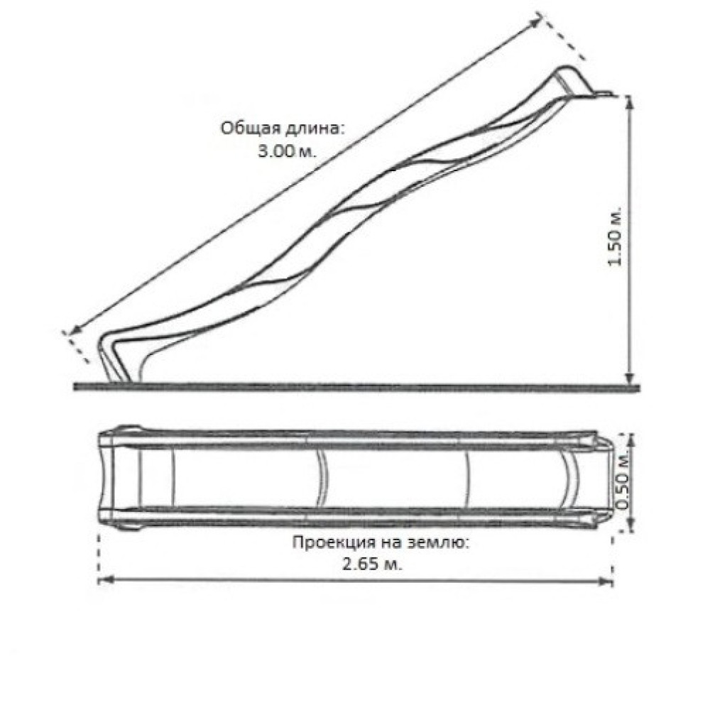 Спуск может быть установлен в различных конструкциях на детской площадке, а также самостоятельно. База горки имеет длину 3 метра и максимально разрешенный вес до 70 кг. Горка может быть установлена во все виды конструкций, таких как деревянные дома, башен и т.д. Установка горки занимает буквально 10 минут.