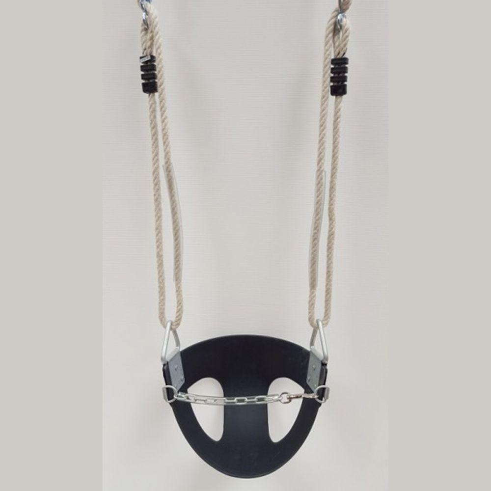 Детские качели-корзина сделаны из высококачественного каучука, благодаря этому очень долго сохраняют свой вид и качество. В качестве защиты от выпадения используется надёжная металлическая цепь, закрытая в резиновую трубку, по этому является комфортной и мягкой для ребенка. В комплекте с качелями идет армированный трос для подвешивания, который рассчитан до 100 кг нагрузки
