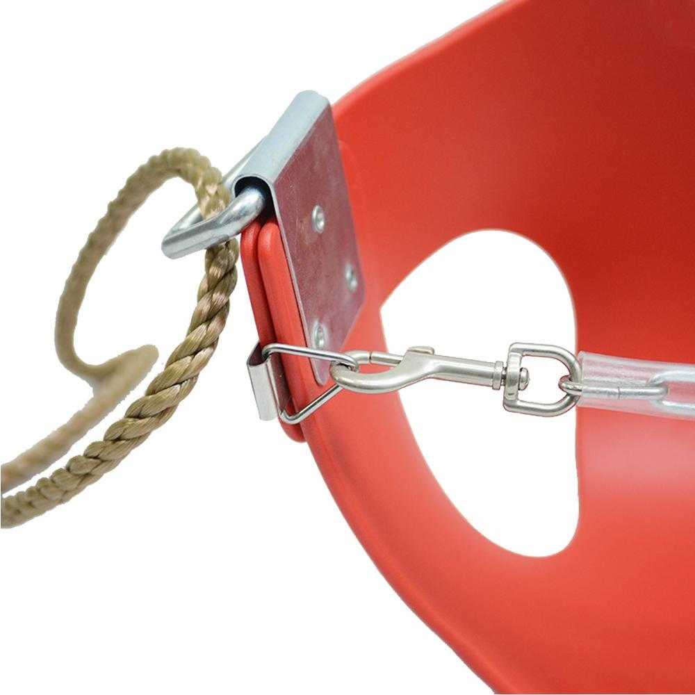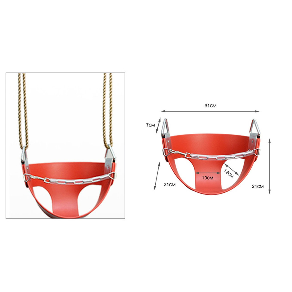 Детские качели-корзина сделаны из высококачественного каучука, благодаря этому очень долго сохраняют свой вид и качество. В качестве защиты от выпадения используется надёжная металлическая цепь, закрытая в резиновую трубку, по этому является комфортной и мягкой для ребенка. В комплекте с качелями идут так же металлические цепи для подвешивания, которые рассчитаны до 70 кг нагрузки