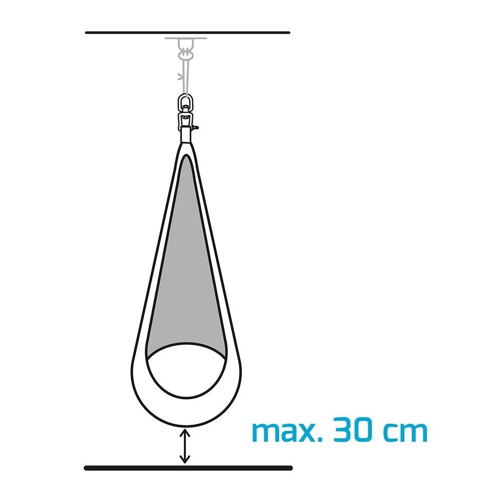Снаружи подвесное кресло изготовлено из особо прочного чистого хлопка - без ворса, пригодного для стирки при 30 °C.