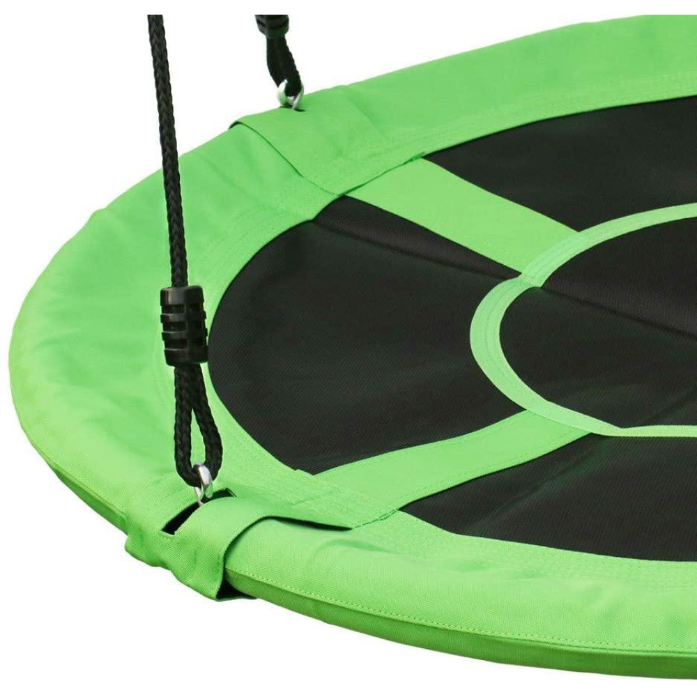 Конструкция сиденья включает стальной каркас диаметром 100 см, покрытый для безопасности и комфорта специальной пеной и основу из сверхпрочного материала(600D OXFORD). Канаты регулируются по длине в пределах 140-180 см. Они изготовлены из нейлона диаметром 10 мм, устойчивы к изменению погодных условий, а следовательно качели можно оставлять на дворе в дождь и снег.