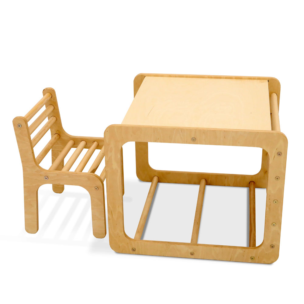 Комплект дитячих меблів Кубик допоможе малюкові у пізнанні навколишнього світу. Надійний та зручний дует столу та стільчика дозволить своєму юному власнику повністю поринути у дослідницьку діяльність, а мамі – не турбуватися за безпеку свого чада. Переваги: практичне використання – зручне як для навчання, так і для ігор, малювання та занять хобі; округлені кути стільниці – мінімізований ризик травмуватися; екологічні матеріали – виготовляється з натурального дерева.