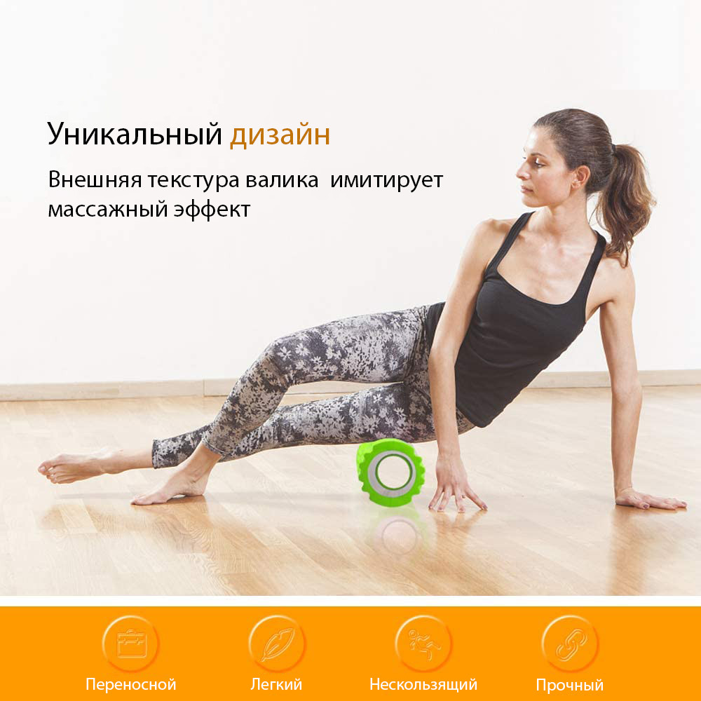 - Эргономичный дизайн: Поверхность роллера создает оптимальное сцепление для комфортного массажа.