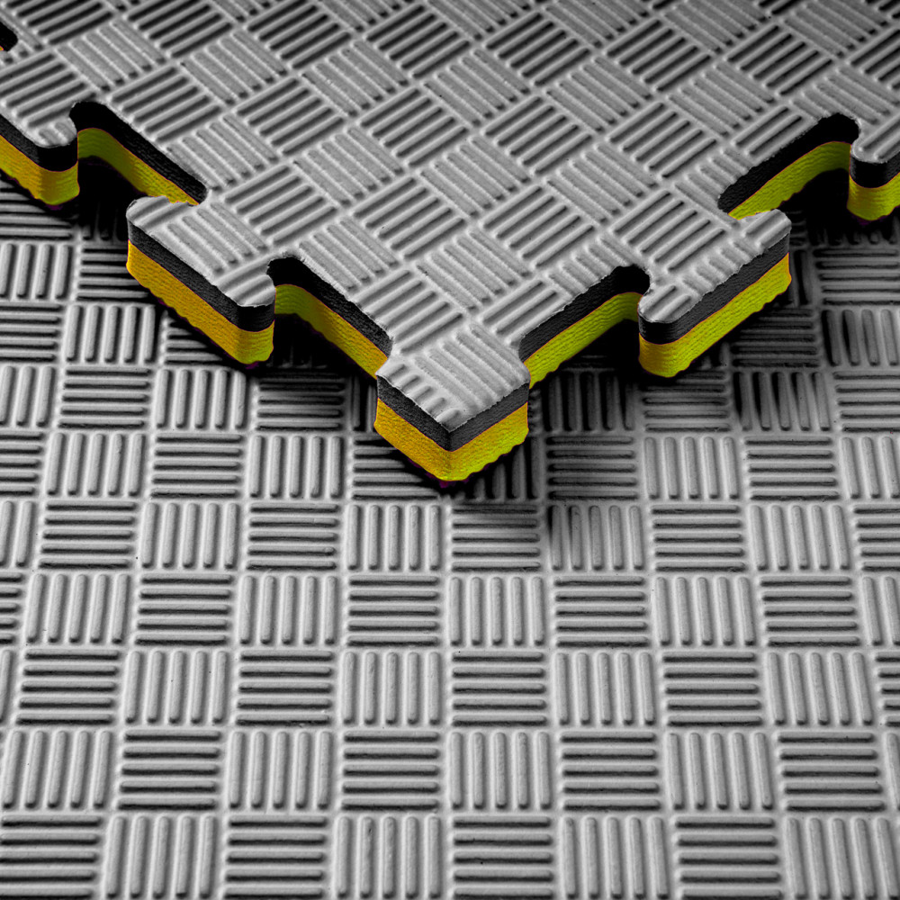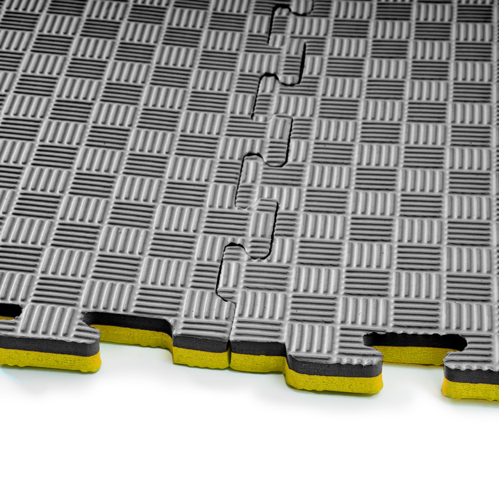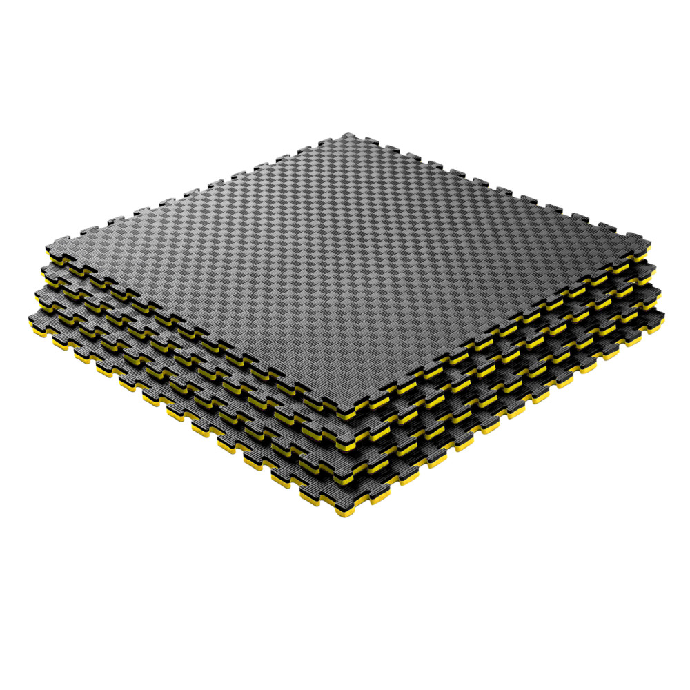Мат Татами 1000х1000х20 мм черно желтые - является одним из самых популярных и универсальных видов напольных покрытий для детских площадок, спортивных заведений, фитнес-клубов и других спортивных помещений. Они производятся из безопасного материала на основе этиленвинилацетата (EVA/ЕВА) имеют низкий вес и простоту в монтаже. Татами состоят из легко соединяемых между собой пазлов, что делает процесс монтажа быстрым и простым.