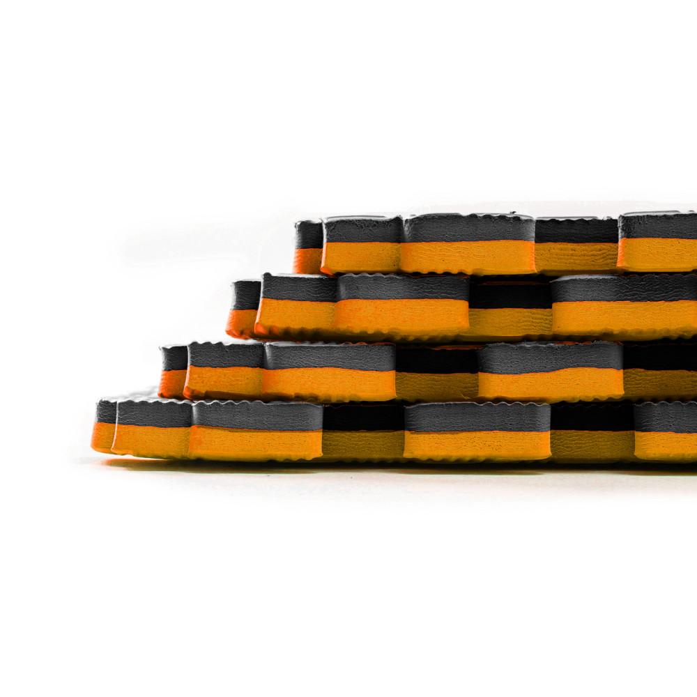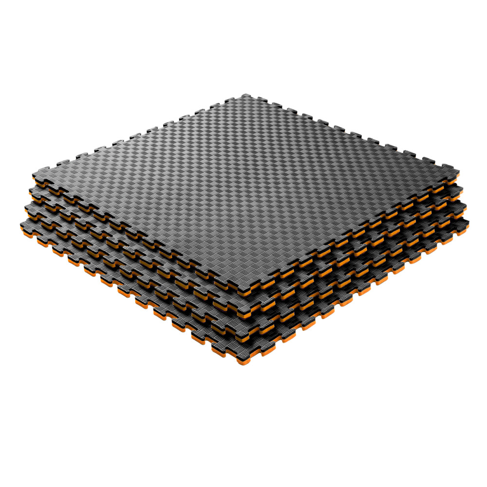 Мат Татами 1000х1000х20 мм черный и оранжевый - является одним из самых популярных и универсальных видов напольных покрытий для детских площадок, спортивных заведений, фитнес-клубов и других спортивных помещений. Они производятся из безопасного материала на основе этиленвинилацетата (EVA/ЕВА) имеют низкий вес и простоту в монтаже. Татами состоят из легко соединяемых между собой пазлов, что делает процесс монтажа быстрым и простым.