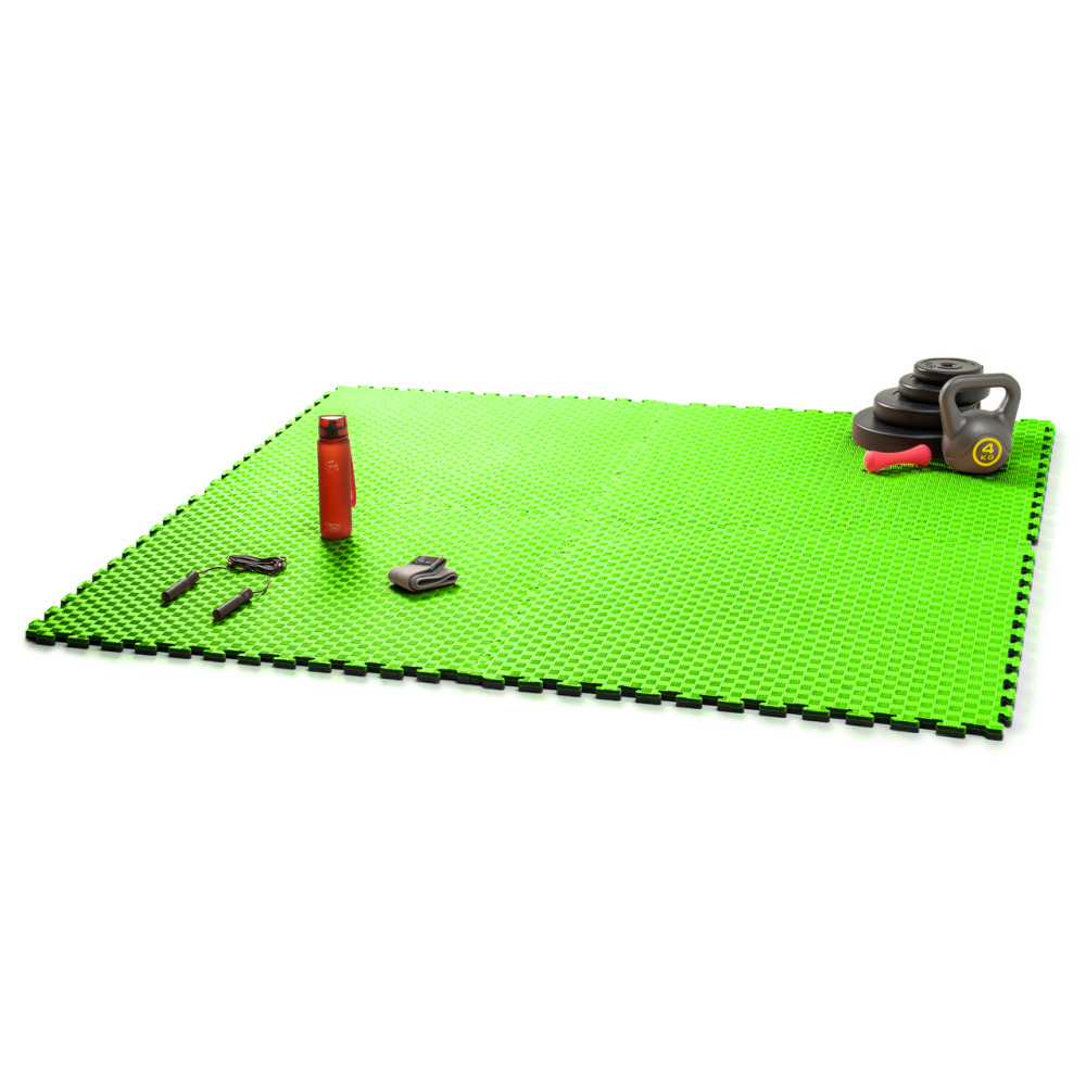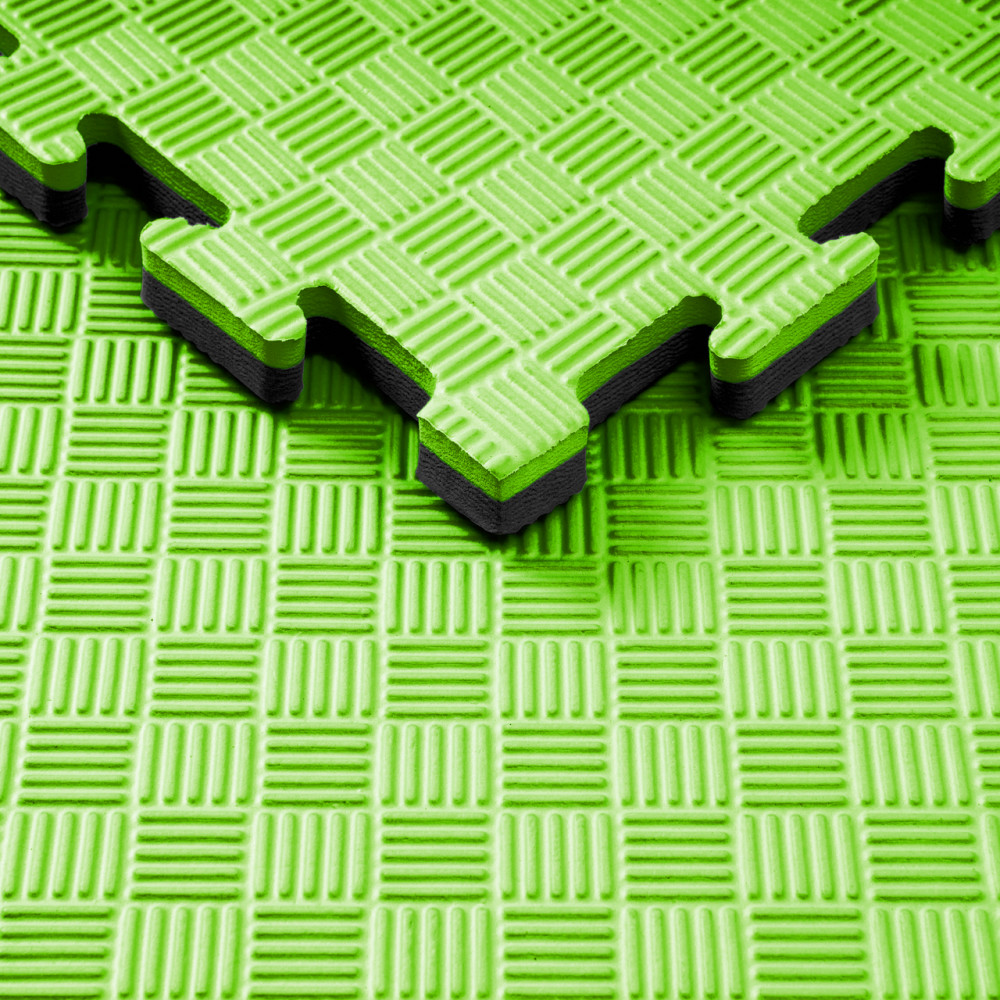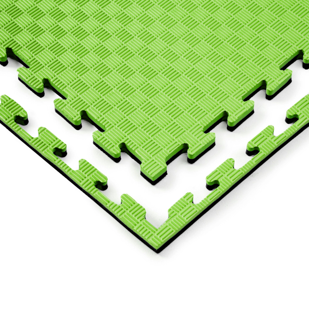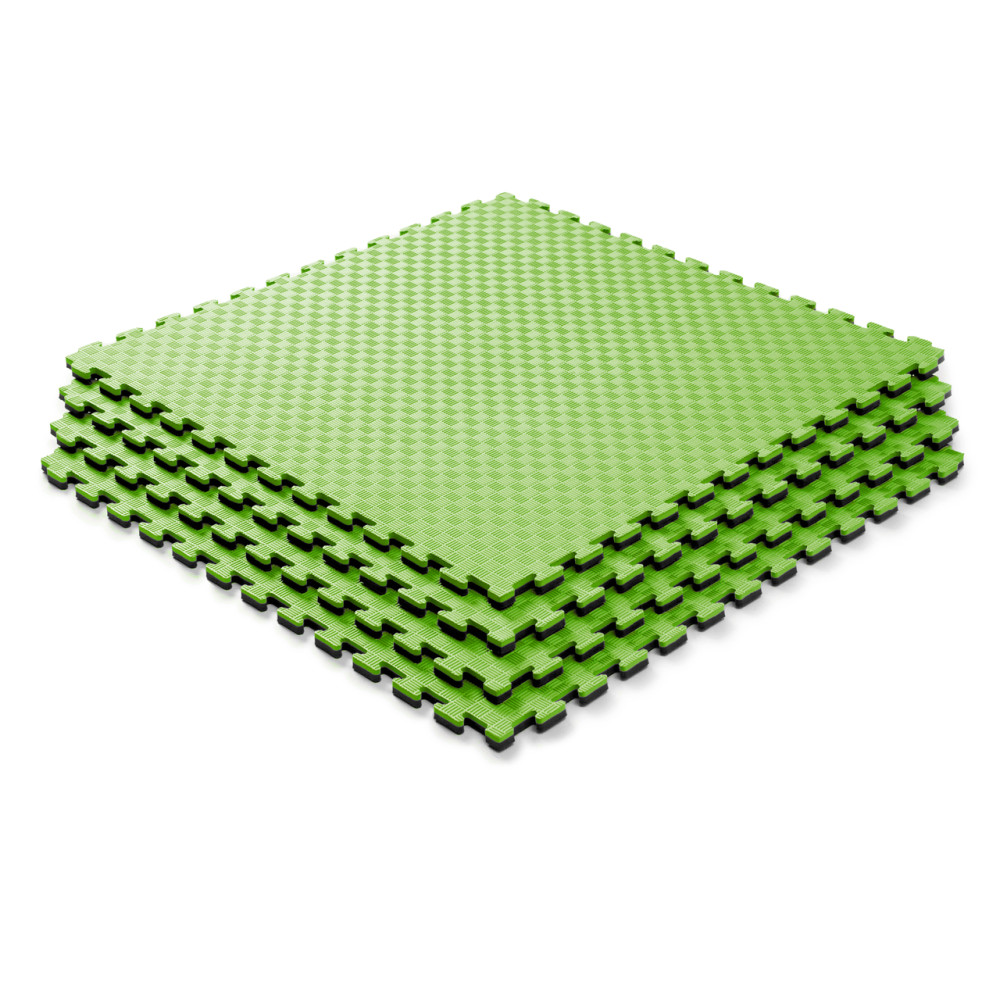 Мат Татами 1000х1000х20 мм зеленый и черный - является одним из самых популярных и универсальных видов напольных покрытий для детских площадок, спортивных заведений, фитнес-клубов и других спортивных помещений. Они производятся из безопасного материала на основе этиленвинилацетата (EVA/ЕВА) имеют низкий вес и простоту в монтаже. Татами состоят из легко соединяемых между собой пазлов, что делает процесс монтажа быстрым и простым.