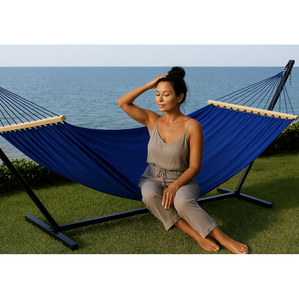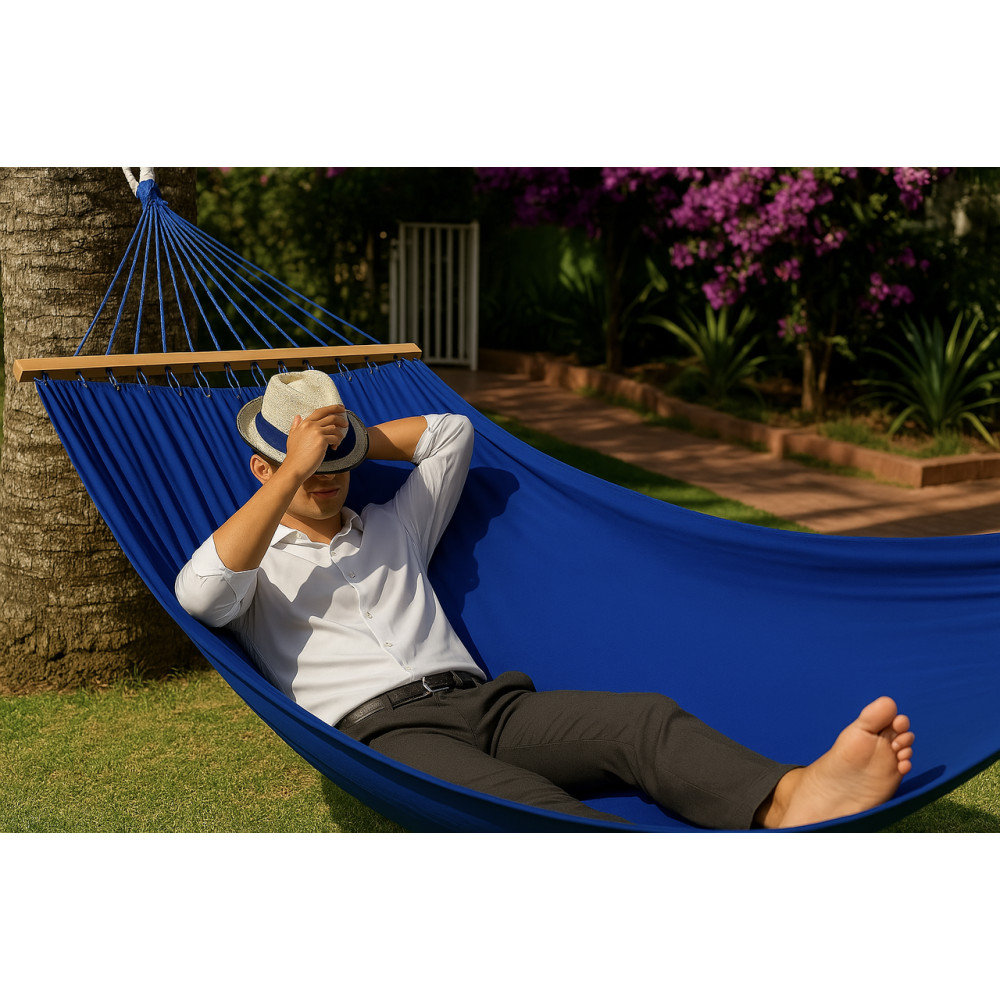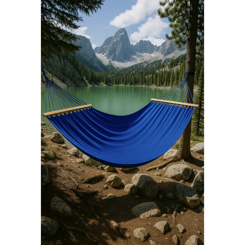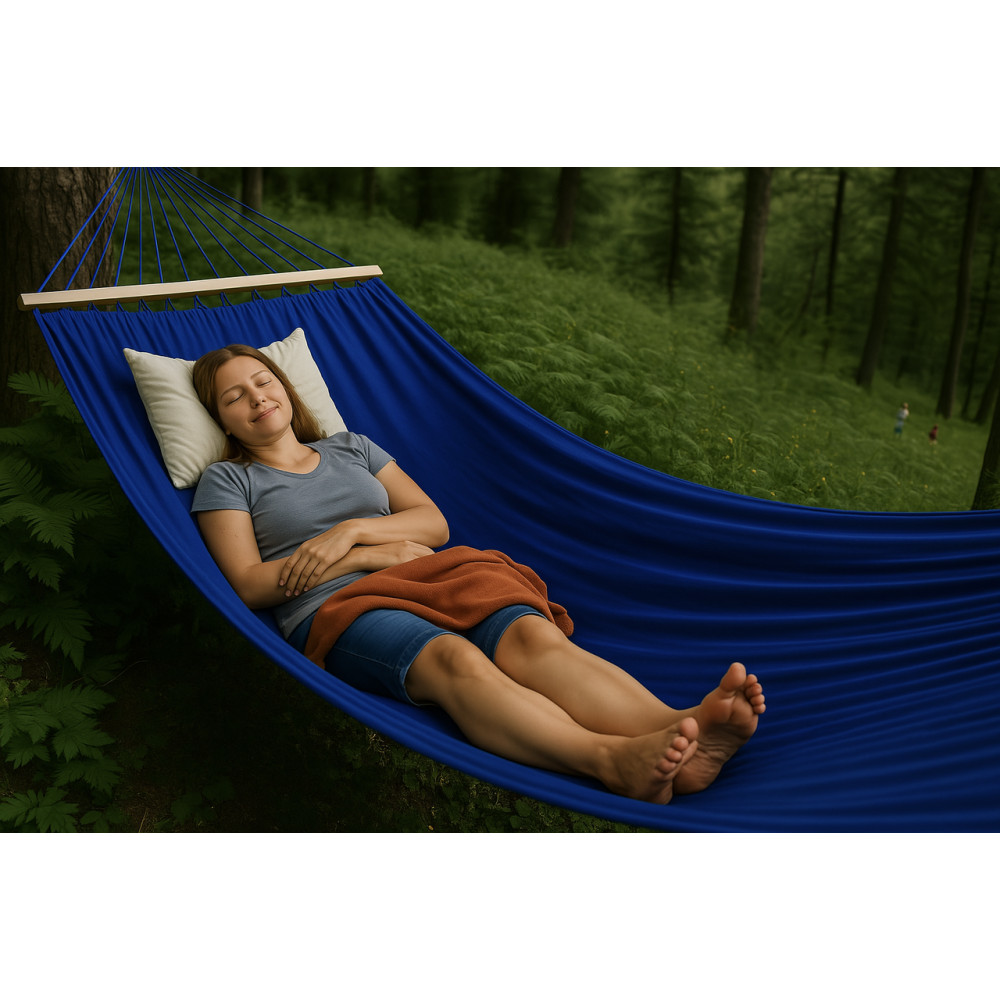 - Монотонный гамак с планкой WISH синий двухместный XXL 200х150 WCG