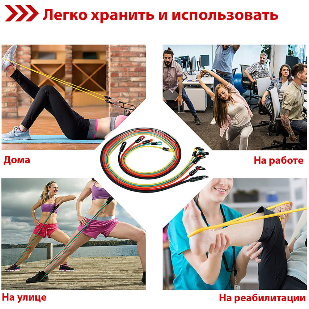 Пять цветных трубчатых эспандеров из латекса для дома и тренажерного зала, можно использовать отдельно или сложить в любой комбинации, максимальная нагрузка 45 кг (Сопротивление).