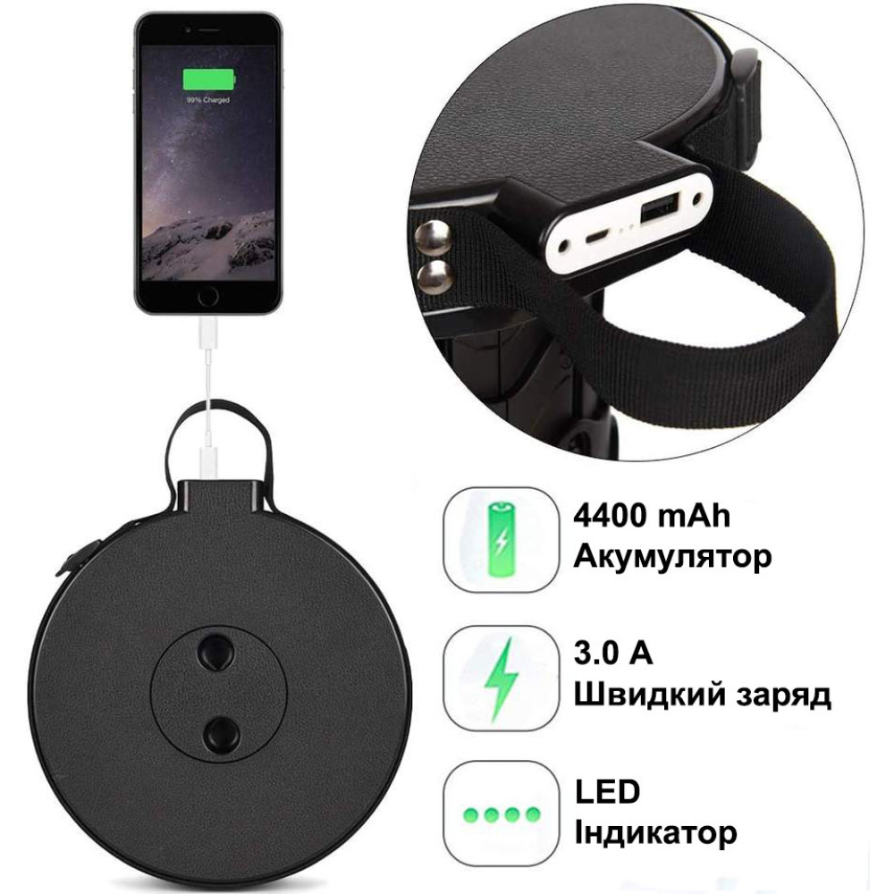 Особенностью этого кресла является встроенный павербанк с обьемом 4400 mAh. Это позволяет заряжать различные портативные устройства, такие как смартфоны, планшеты и другие гаджеты, во время отдыха или на открытом воздухе. С выходной мощностью 3 ампера павербанк обеспечивает быструю и эффективную зарядку устройств.