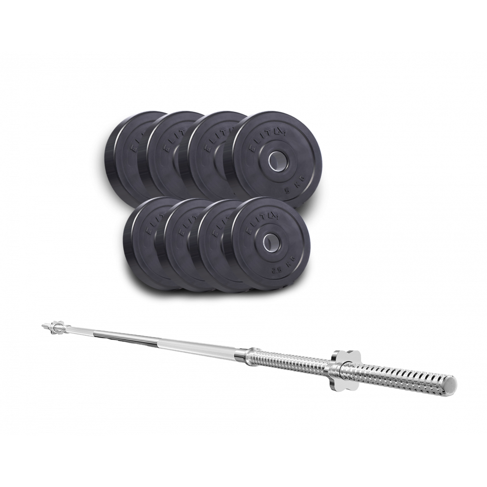 Набір складається з дисків, покритих ABS-пластиком, та сталевого хромованого грифа. Висока якість виготовлення та довговічність деталей гарантує, що ваші тренування з цим набором проходитимуть комфортно, безпечно та з максимальною користю.