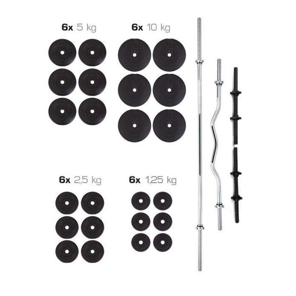 Представляем набор нагрузок (Штанга + Гантели) с общим весом 128 кг. С помощью данного набора Вы сможете полноценно заниматься со штангой и гантелями как и в спортзале так и в домашних условиях. Диски подходят к прямому грифу, w-образному и к гантельным грифам поэтому набор считается универсальным. Вы сможете чередовать занятия со штангой и гантелями, тем самым равномерно прорабатывать различные группы мышц.