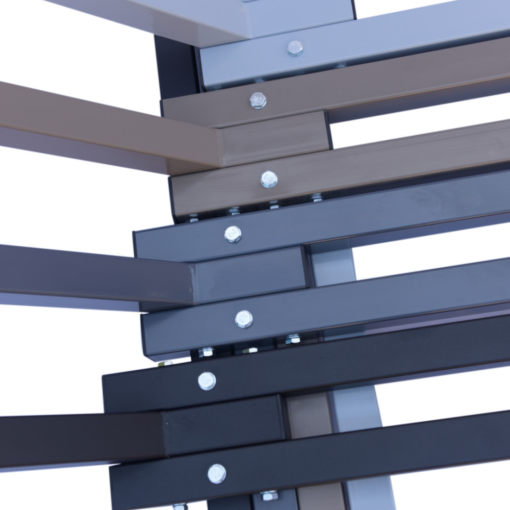 Для повышения устойчивости металла, его покрывают специальным полимерным покрытием, который придает каркасу превосходную устойчивость к погодным условиям. Вы всегда можете оставлять стойку на улице, не боясь, что дождь или солнечные лучи испортят ее.