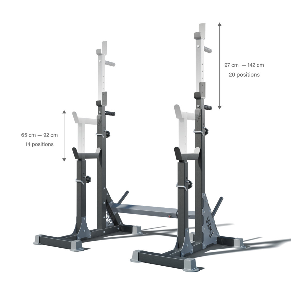С регулируемыми страховочными упорами вы можете тренироваться интенсивно и уверенно, не опасаясь за свою безопасность.