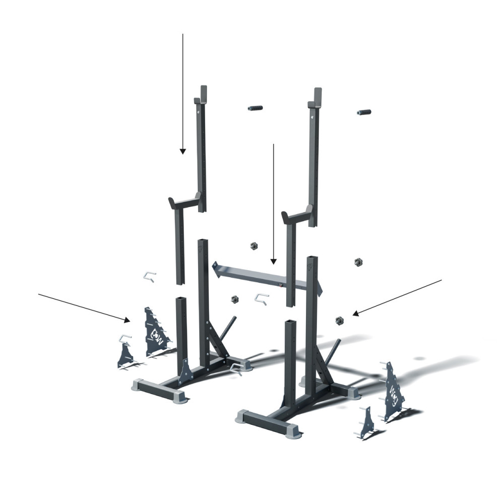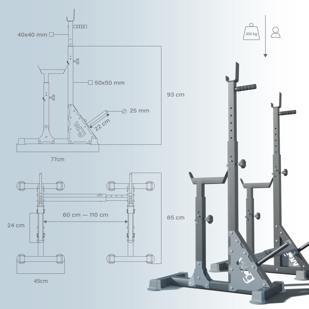 ???? Функциональные стойки под штангу с страховочными упорами 3в1 Bugai Pro - жим, приседания, брусья WCG